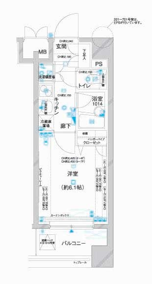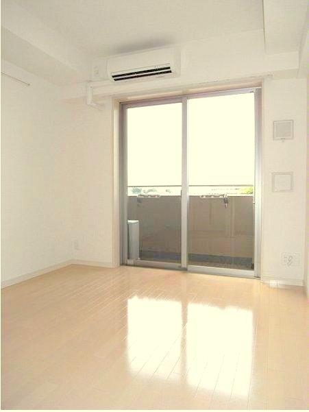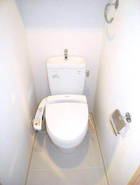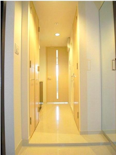 分譲賃貸 清潔感のある室内 廊下 室内エアコン付き タイル床のトイレ